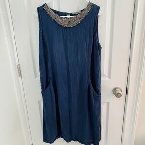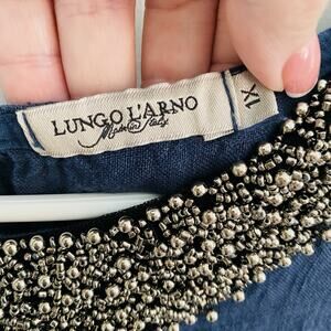 Lungo L’arno Linen Midi Dress Size 1X Navy Beaded Pockets Shirt beach Vacation