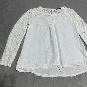 Lungo Larno Shirt Womens Small‎ White Linen Lace Long Sleeve Top Italy