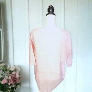 Beautiful linen top with 3/4 sleeves. It has white embroidery on the front bodice area. The top has button on the side for a decorative look. It has a back slightly longer than the front. Loose fit for comfort. Made in Italy.