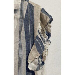 Lungo Larno Top Womens Large Striped Flutter Sleeve Linen Button Up Beachy