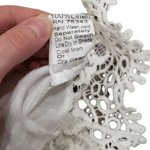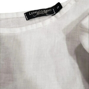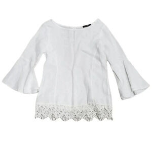 Lungo L'arno White Linen Crochet Trim Bell Sleeve Blouse S