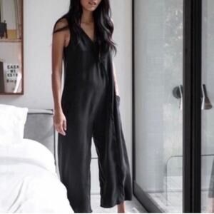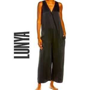 Lunya 100% Silk Black Sleeveless Jumpsuit Pajama Romper with Pockets Medium