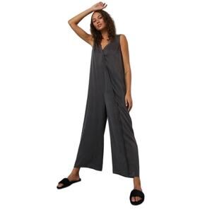 Lunya Silk Black Sleeveless V-Neck Jumpsuit Pajama Romper with Pockets