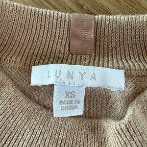 Lunya Cozy Cotton Silk Blend Windowpane Beige Sweater {XS}