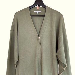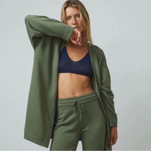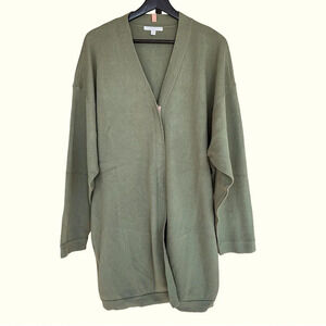 Lunya Cozy Cotton Silk Button Front Longline Cardigan Hunter Green L/XL NWOT