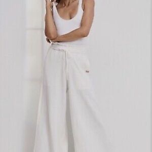 Oversized fit. High rise, high waisted. Drawstring paperbag waist. No-twist elastic waistband. No bunching while you sleep. Side pockets.