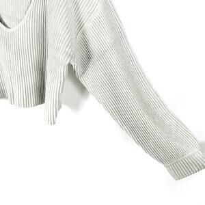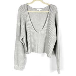 NEW Lunya Cozy Cotton Silk Reversible Pullover Sweater Mellow Grey Heather Sz L Ribbed Cropped (can be worn V-Neck or Boat Neck, depending on which side faces front)