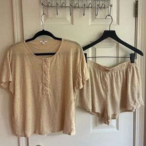 Lunya Linen Short set from a few seasons ago. I have two sizes available. They are both in perfect condition and hardly worn. No stains or pulls.