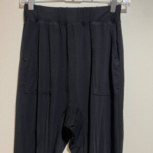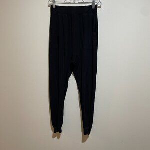Lunya Black Harem Casual Modal Joggers Pants. Dropped crotch slouchy fit. Jogger cinched ankles. Pull on elastic waist. Has pockets.