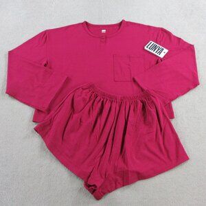 Lunya Slumberknit Long Sleeve Henley Short Set Womens XS Pomegranate Red Pajamas