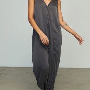 Lunya Washable Silk Double V Jumpsuit in Meditative Grey