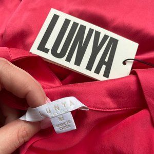 Lunya Washable Silk Robe Energized Pink Medium Self Tie Removable Belt Pockets