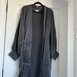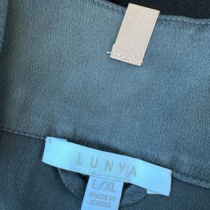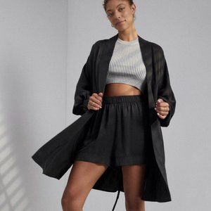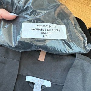 Lunya Washable Silk Robe L/XL Black Eclipse Self Tie Belt Pockets Hypoallergenic