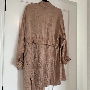 Lunya Washable Silk Robe XS/S Otium Tan Self Tie Belt Hypoallergenic Sleepwear