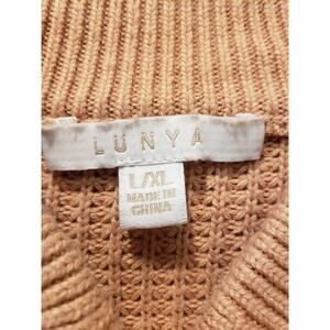 Lunya Womens Cotton Silk Henley Waffle Sweater in Tranquil Tan Size L/XL