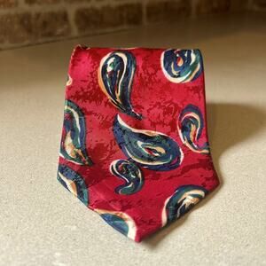 L’uomo italin silk red blue paisley vintage 80s 90s style silk men’s tie