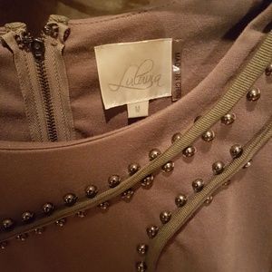 Gray/taupe knit dress with piping and beaded design. Worn once. Quality material.