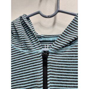 Lur Lagenlook Hoodie Womens Small Teal Navy Striped Full Zip 3/4 Sleeve Casual