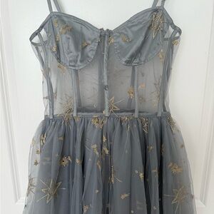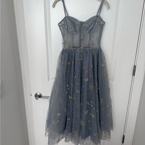 Lurelly Elegant midi Blue Tulle Dress with Floral Embroidery size 6