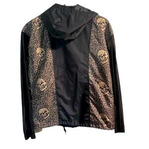 Lurking Class Skull Lightweight Hoodie Jacket Sheer Sleeve, size L. Zip front closure. Excellent condition. No noted flaws.