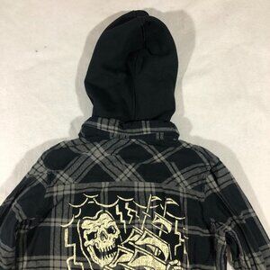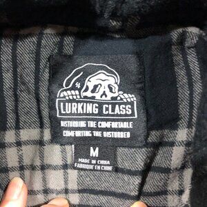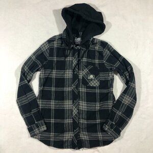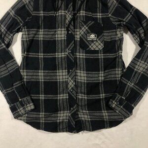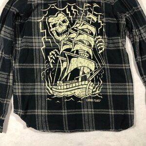 Lurking Class Top Womens Medium Flannel Button Front Shirt Hood Graphic Skull