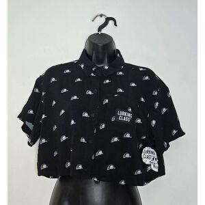 Lurking Class by Sketchy Tank Lurker Black Crop Short Sleeve Woven Shirt Size Sm