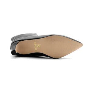 Women's Knee High Boots in black leather with a pointed toe and 2-inch heel are a stylish and versatile choice for various occasions. These slip-on boots feature a zip closure and are designed for a comfortable fit with a regular calf width. The stiletto heel and solid black color make them a chic option for formal events or casual outings, while the rubber outsole provides durability and traction. Perfect for winter and fall, these boots are a fashionable addition to any woman's wardrobe.