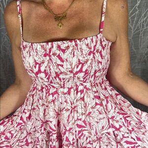 This delightful sundress features a playful pleated dress and a charming pink and white color palette. Designed with a spaghetti strap neckline, it offers a breezy, sleeveless style perfect for casual or resort wear. The mini length adds a flirty touch, making it ideal for warm weather adventures. PreOwned