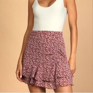 Lush Always Carefree Rust Brown Floral Print Ruffled Mini Skirt