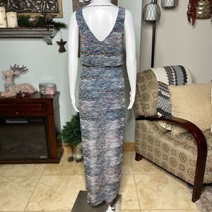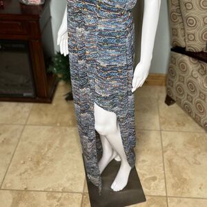 Lush Aztec Tribal Multicolored Pattern Side Slit Sleeveless Maxi Dress Size Sm