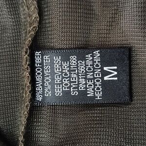 Lush Bamboo & Polyester Olive Midi Dress with Frayed Ruffle Detail, Pull-On Style with a Smocked Stretchy Waist, and Fully Lined Skirt. No Pockets.