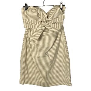 Lush Beige & White Stripe Knotted Strapless Mini Dress S