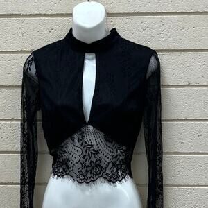 Lush Black Lace Top size S. Back zipper. Approx. measurements 14” chest flat across, 17” length.