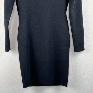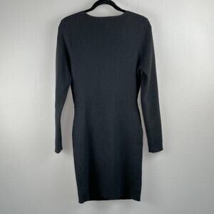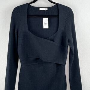 Lush Black Ribbed Knit Long Sleeve Crossover Mini Sweater Dress Large NWT