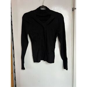 Lush Black Sweater With Criss Cross Neck Woman’s Size Large
