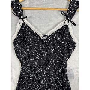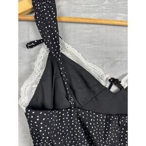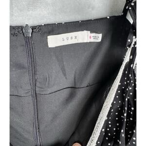 Lush Black & White Polka Dot Mini Dress Lace Detail Size Small