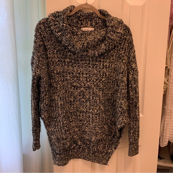 Lush Black and White Turtleneck Sweater with Cozy Knit