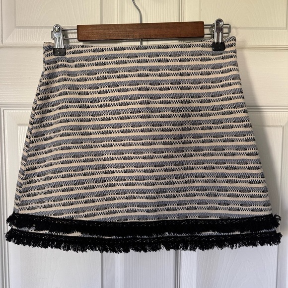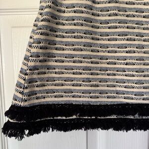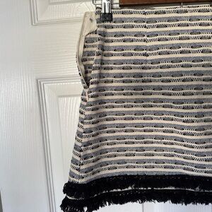 Lush Blue Cream Striped Fringe Hem Mini Skirt Boho Cotton Blend