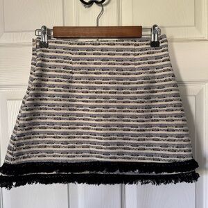Lush Blue Cream Striped Fringe Hem Mini Skirt Size Small Boho Cotton Blend