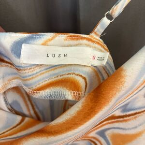 Lush Blue Desert Swirl Pattern Mini Satin Slip Dress Size Small Spring Summer