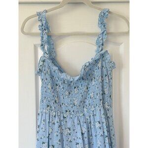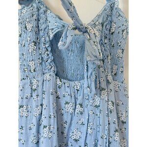 Lush Blue Floral Cotton Mini Dress Medium