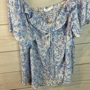 Lush Blue Floral Smocked Back Ruched Front Flutter Sleeve Blouse Size 2X