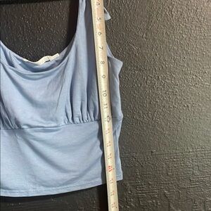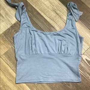 This stylish tank top from Lush features a sleeveless design with a ruched bodice and a charming tie front detail. The soft blue color and cropped style make it perfect for warm weather outings. Crafted from a comfortable, stretchy fabric, it offers a flattering fit and a chic, casual look.