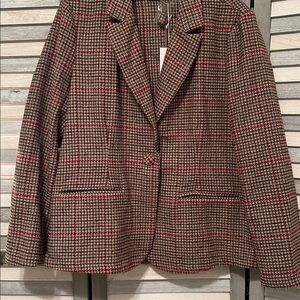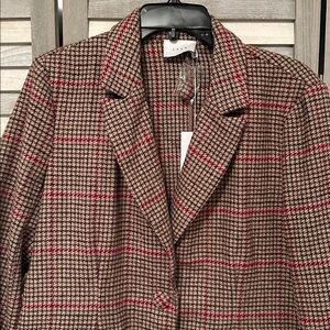Stylish plaid jacket. Features a classic design. Perfect for any occasion.