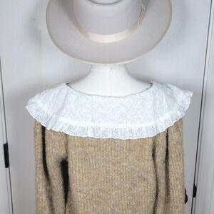 Lush Button Front Cardigan Sweater Eyelet Lace Collar Cottagecore, Whimsical, M