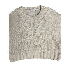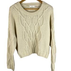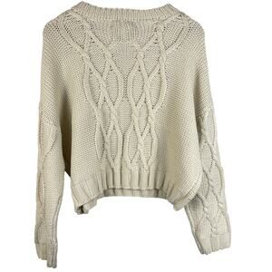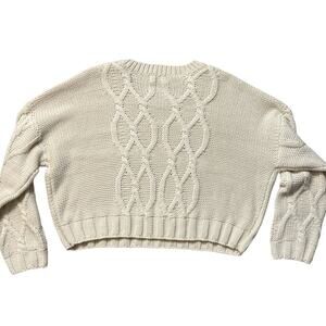 Lush Chunky Cable Knit Oversized Cropped Sweater in Cream Size Medium