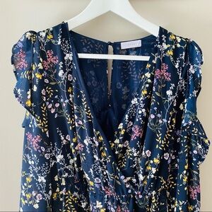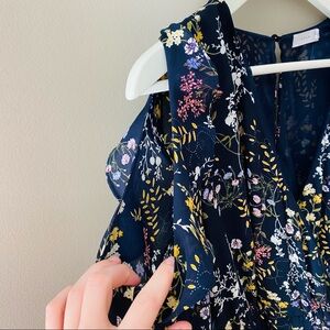 Lush Cold Shoulder Floral Romper Navy Sz Medium