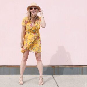 Lush Cole Floral Ruffle Wrap Dress Sz S in yellow flower print