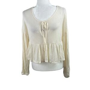 Lush Cream Waffle Knit Tie Front Peplum Babydoll Top Oversized Small/Medium NWT