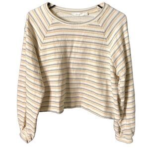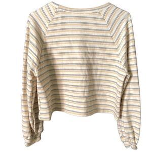 Lush Crop Top Womens S Muted Yellow Striped Long Sleeve French Terry Knit
